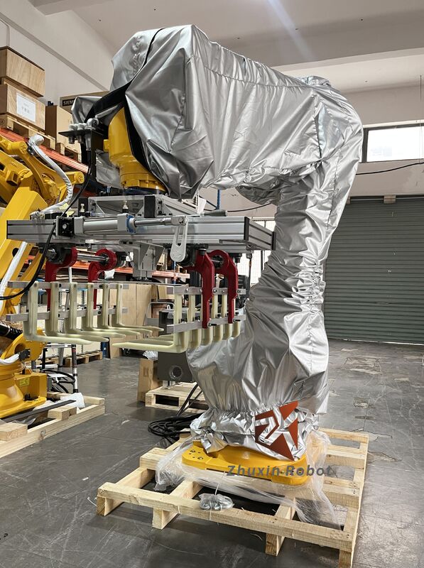 A: Je suis désolé.Robot, alimentation pour le robot, ligne pour le robot, entraînement pour le robot, pince pour le maniement.